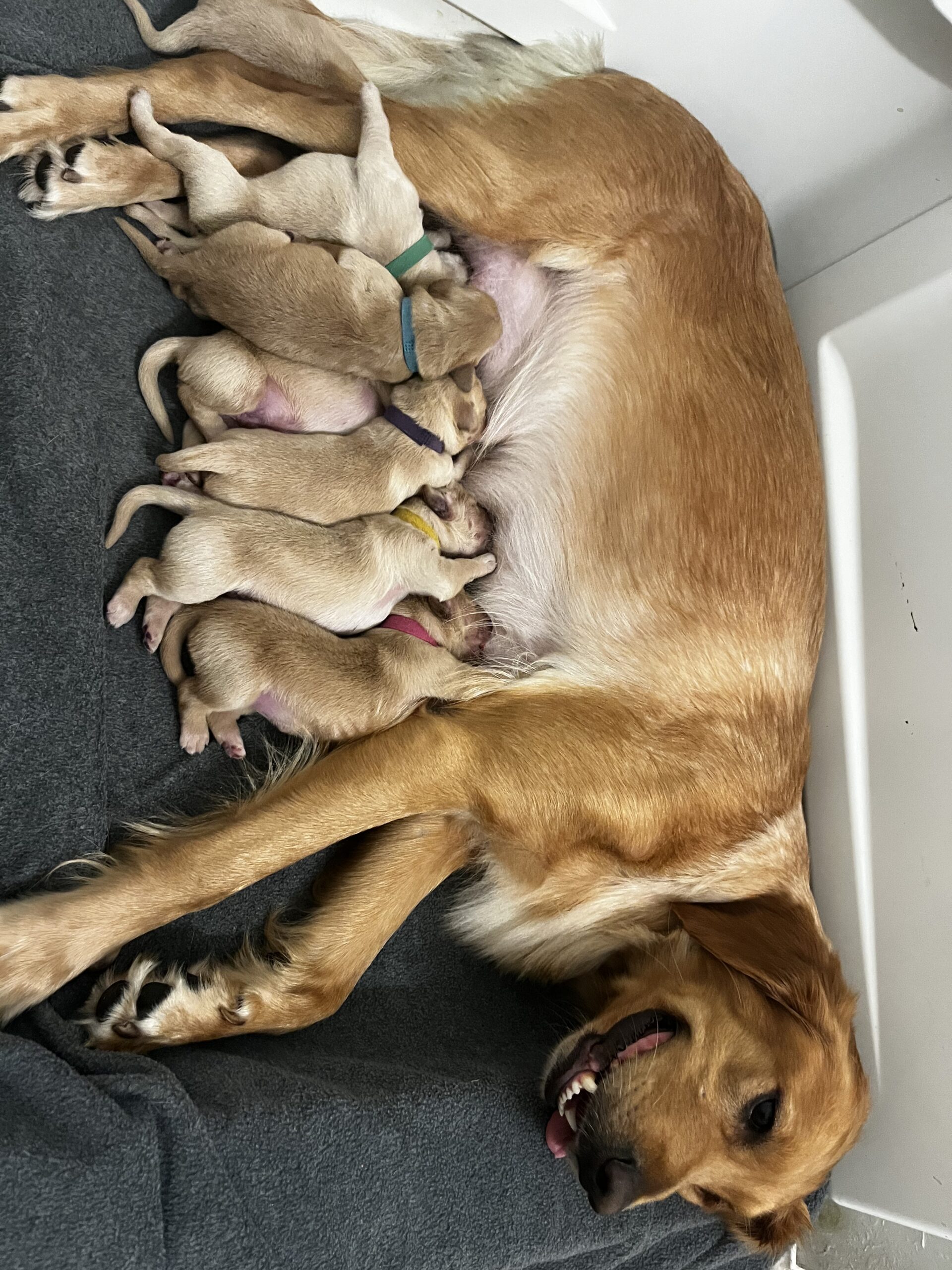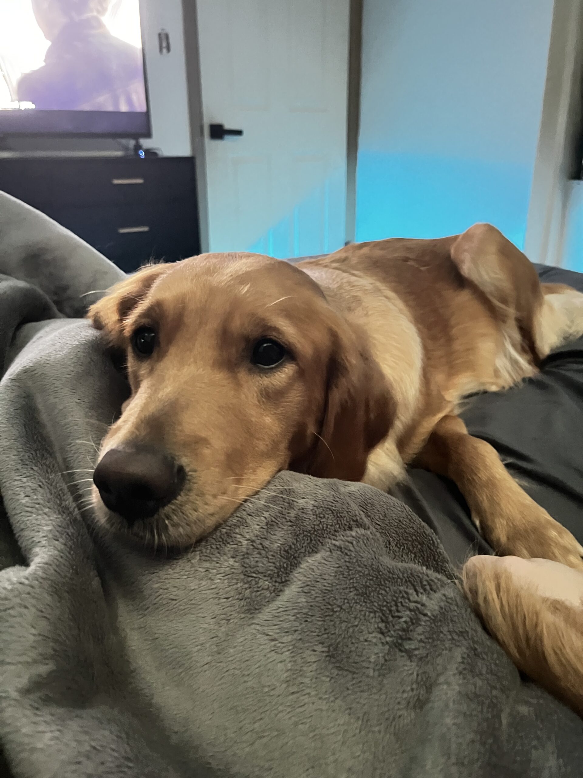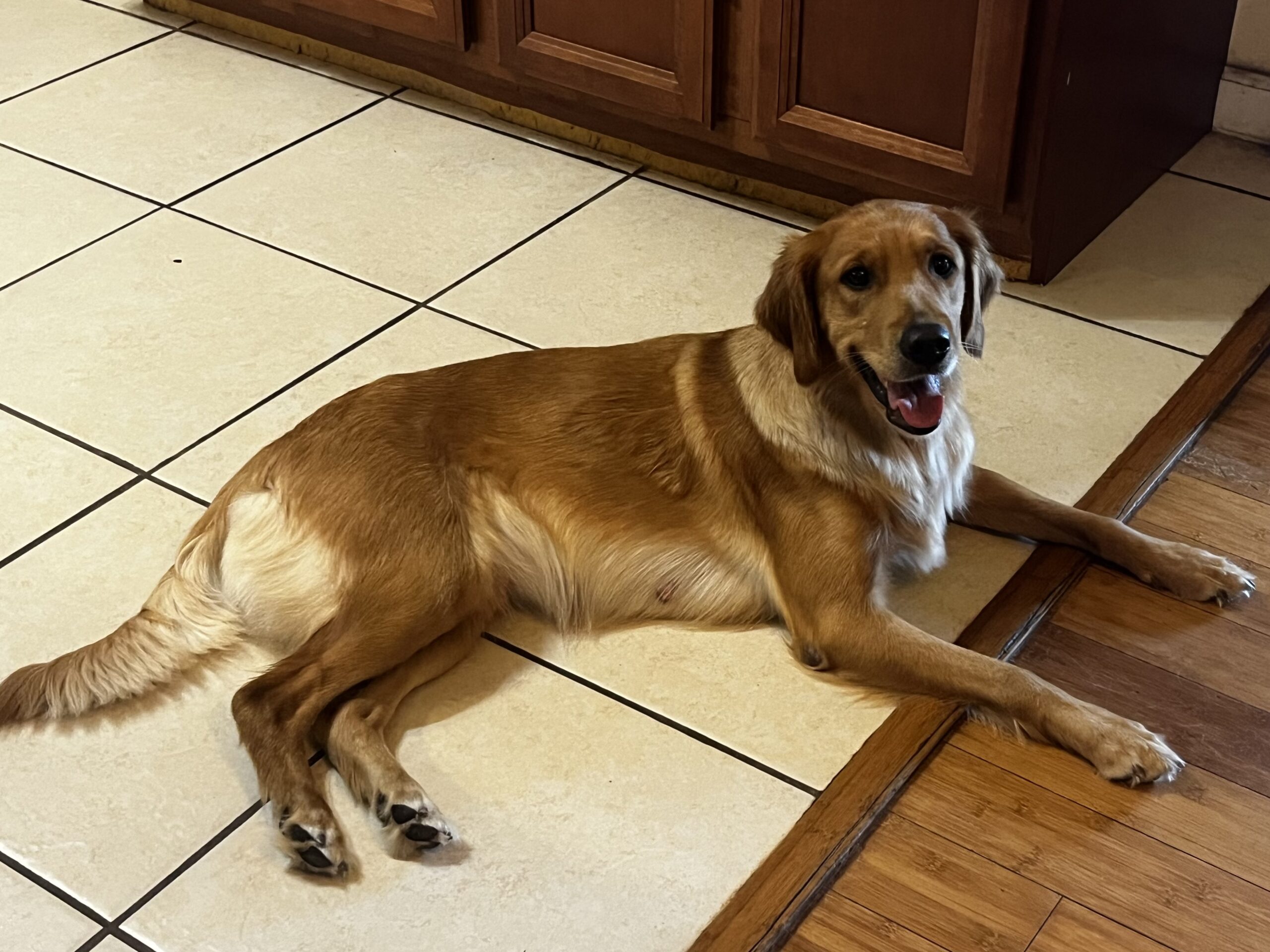 Mia is our sweet and gentle female Golden Retriever. She has a loving, calm personality and adores being part of the family, making her excellent with children, visitors, and other pets.