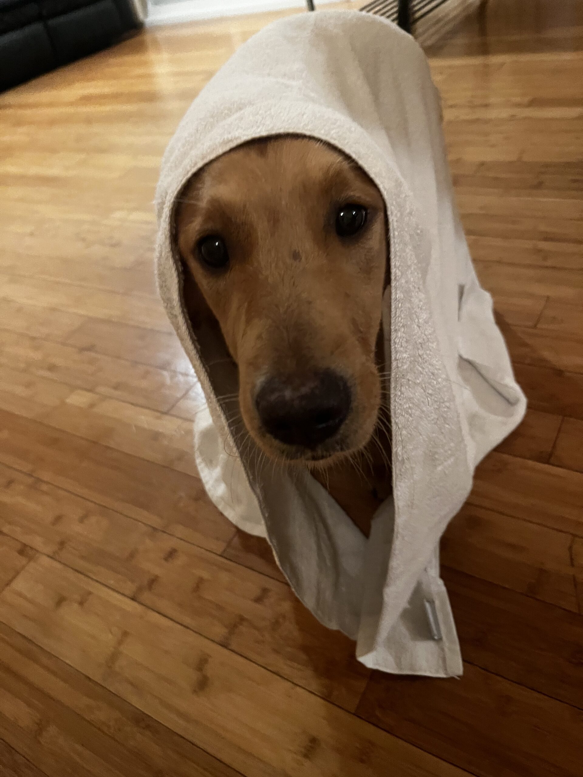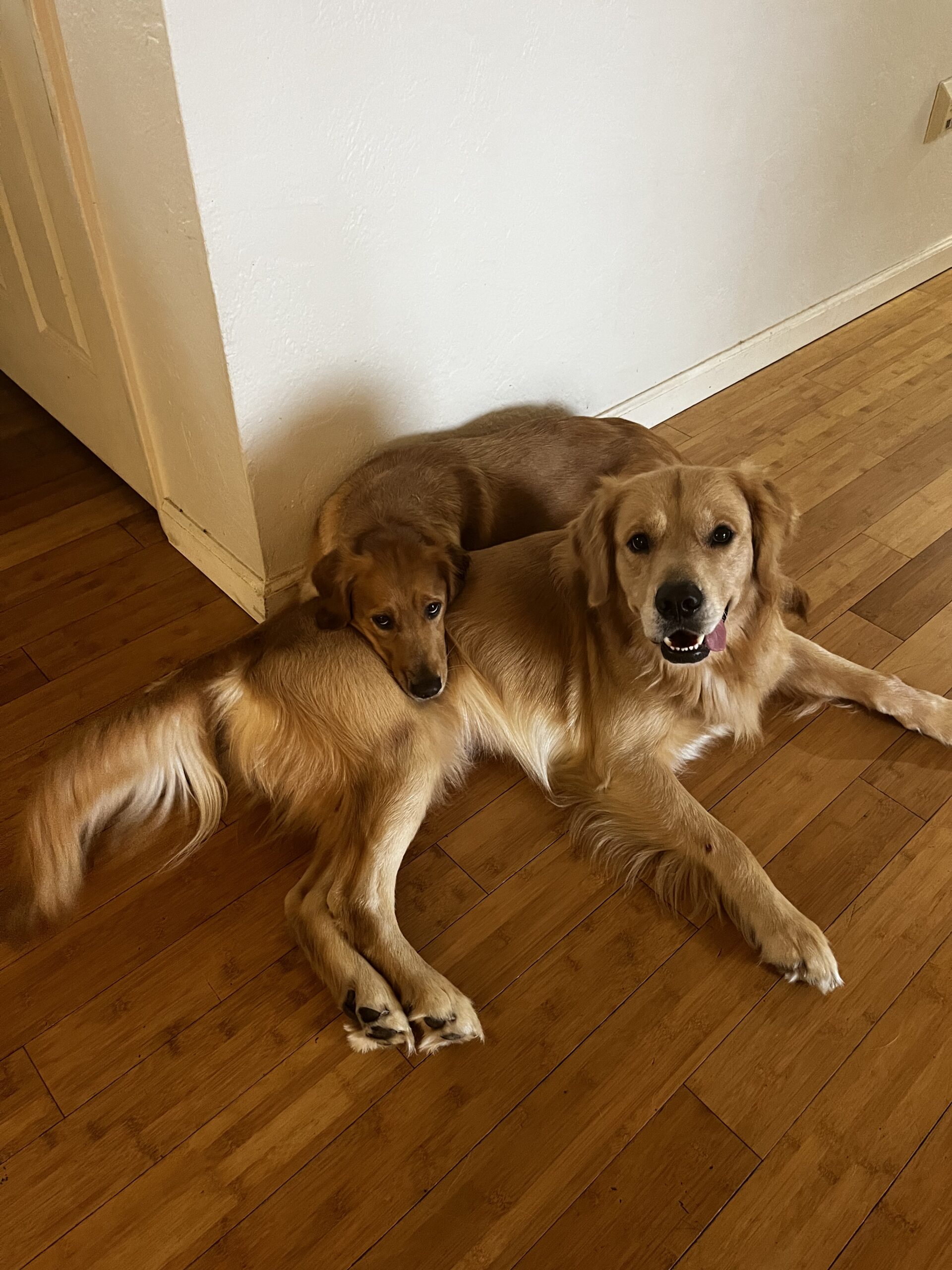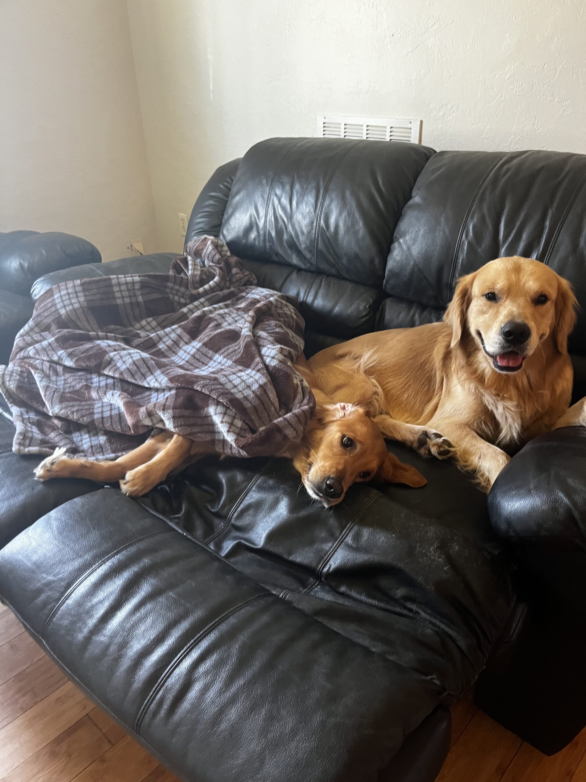 Mia is our sweet and gentle female Golden Retriever. She has a loving, calm personality and adores being part of the family, making her excellent with children, visitors, and other pets.